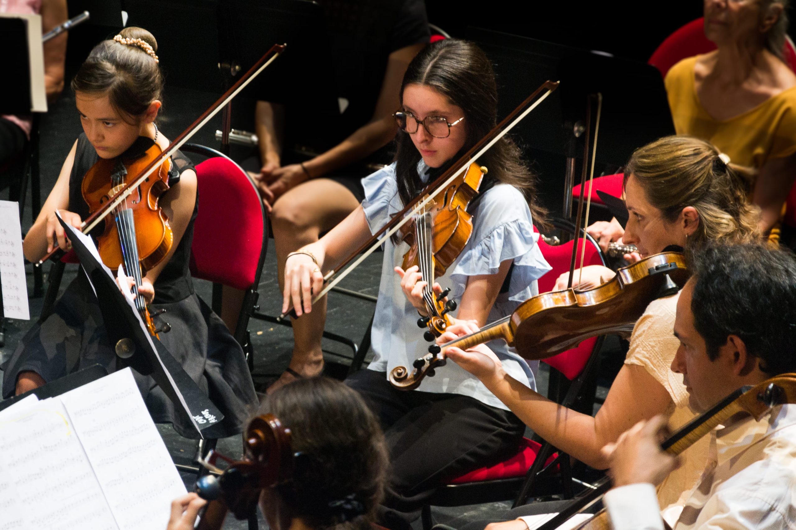 Avec les élèves en formation musicale appliquée (=apprentissage collectif de la musique) de fin de cycle I (cycle qui équivaut à 3 à 5 ans de pratique musicale) en cordes.